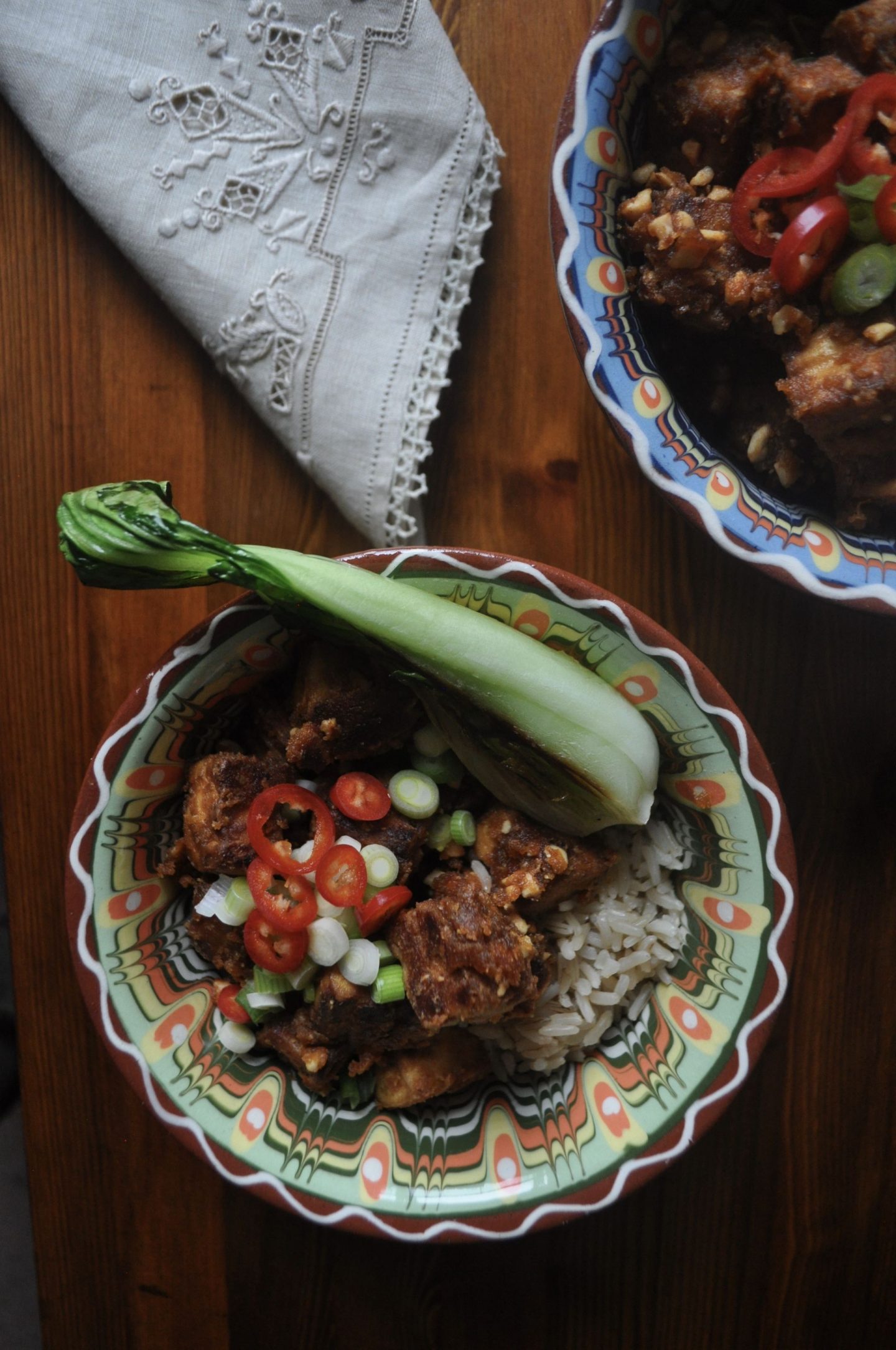 Some people might enjoy the challenge of going cold tofu and plunging into Veganuary straight from their normal diets- but I found it easier to take the time to nail a couple of great vegan recipes that I could fall back on if inspiration wasn’t striking. This recipe made a soup that warmed me to the very tips of my toes, and this marinade, used on crispy tofu instead of beef, started an ardent love affair with Sriracha which shows no sign of abating.