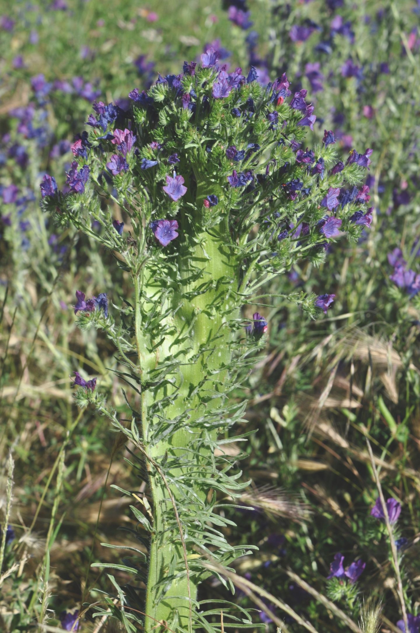 Although it’s rare overall, fasciation is something that a wide variety of plants are susceptible to. Nobody seems to be completely sure what causes it, but there seems to be some consensus around there being an underlying hormonal imbalance, itself caused by viruses, bacteria, frost or just random genetic mutation. The most impressive instances I’ve ever seen of it was in viper’s bugloss, where the fasciated stem was as wide as my outstretched hand and there were a good 30-40 flowers bursting from the top (you can see it below, with a non-fasciated stem for comparison). It was by far the most impressive thing we saw that day- and for a zoologist to be saying that, you know it has to have been very impressive indeed. I’ve been planning to do more botanising with my summer this year- if only these summer downpours we’ve been having would like to take a break…