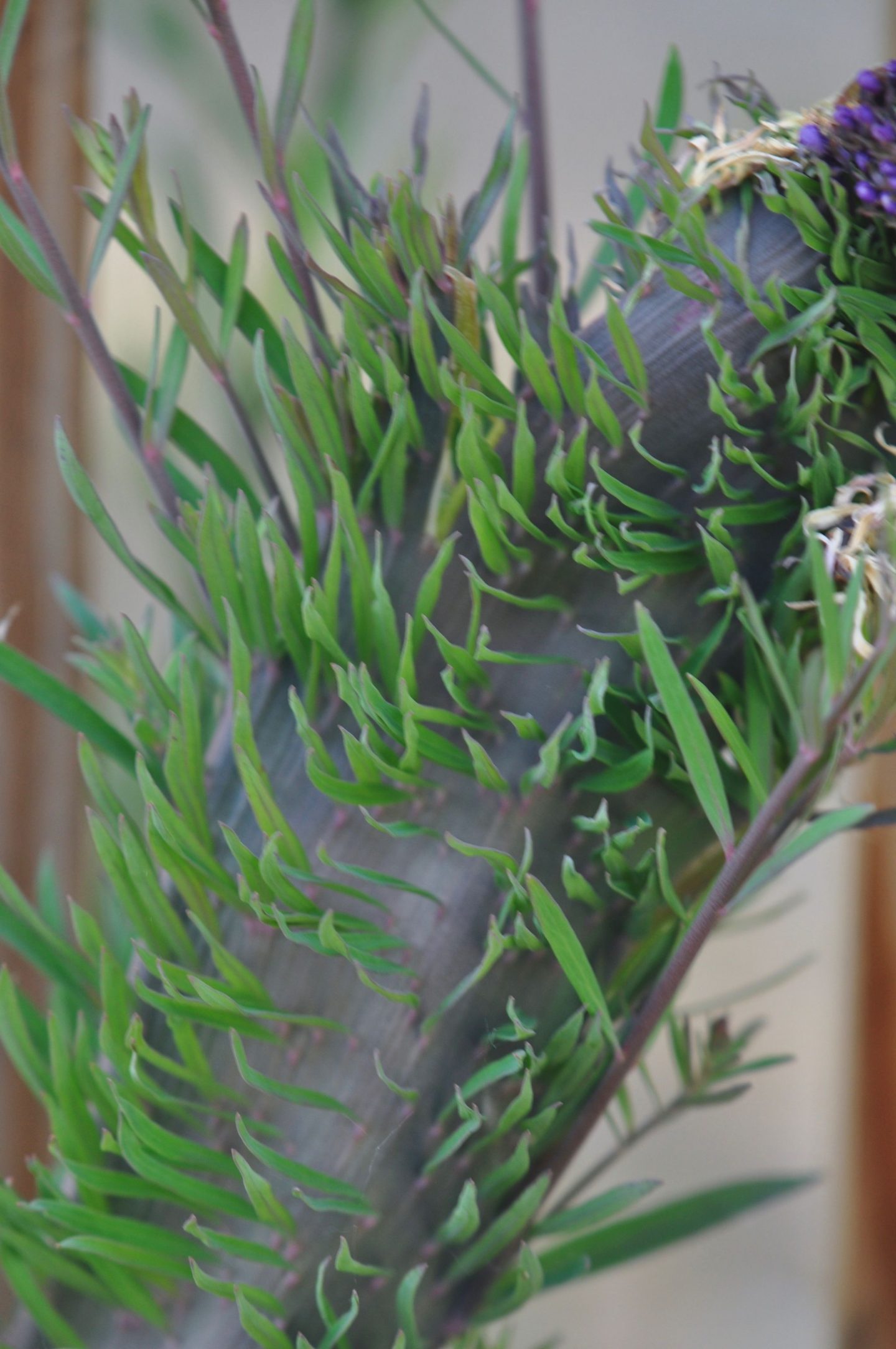 Look at it! Look at this absolute unit of the plant world. Believe it or not, exhibits A and B are exactly the same species- the difference is that the second plant is fasciated. Fasciation happens when the growing tip of a plant (the apical meristem in botany jargon) stops growing cylindrically but becomes flattened and elongated (the term comes from the Latin word fascis, meaning ‘bundle’). In this case, the fasciation has occurred in the stem (it can also happen in the flowers themselves)- it still shoots off leaves, but the stem itself is so wide that it forms this weird sort of vertical grass meadow. And though it looks so top-heavy that it should be toppling over, that stem is remarkably strong- it easily keeps the plant upright.