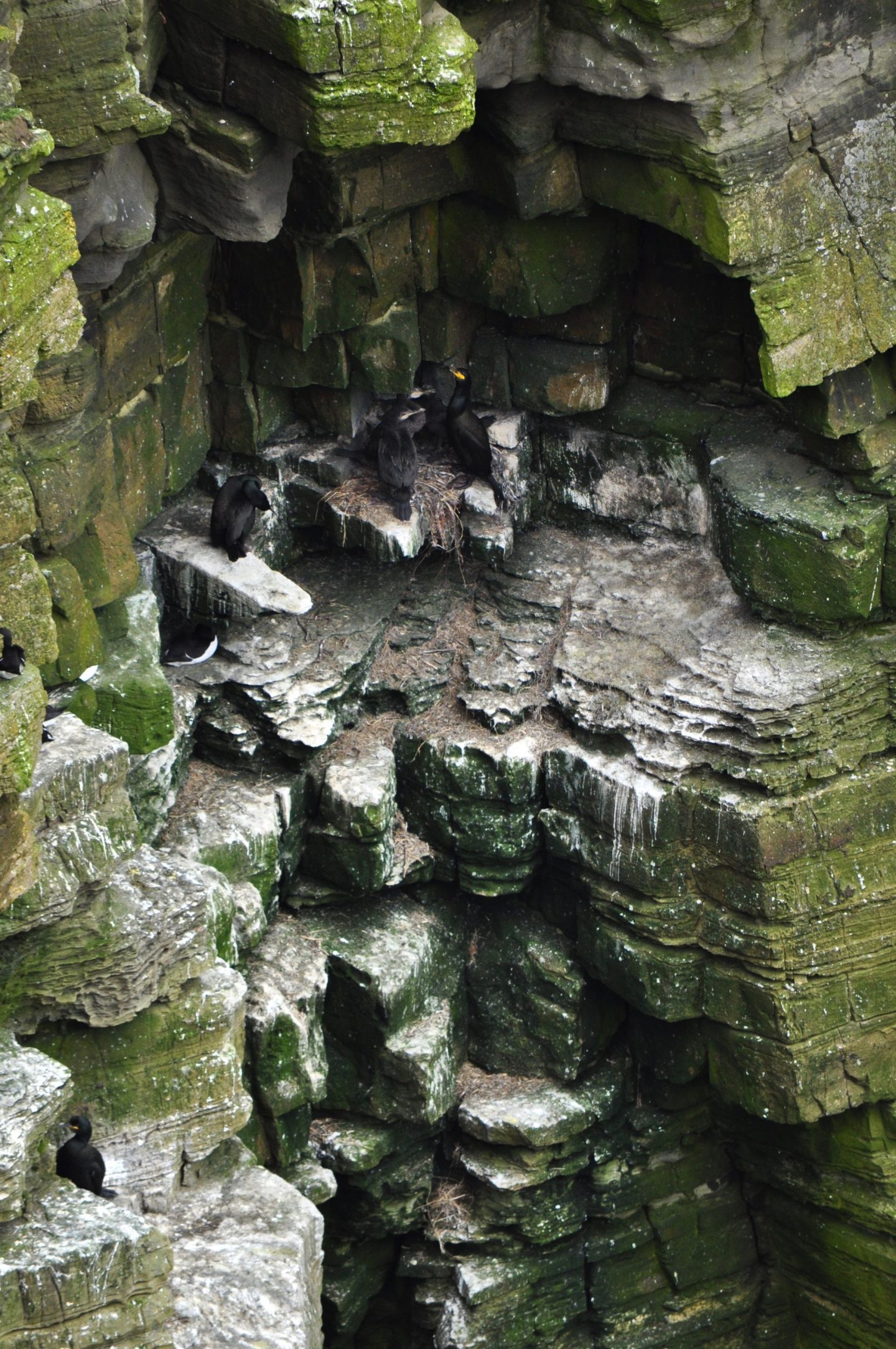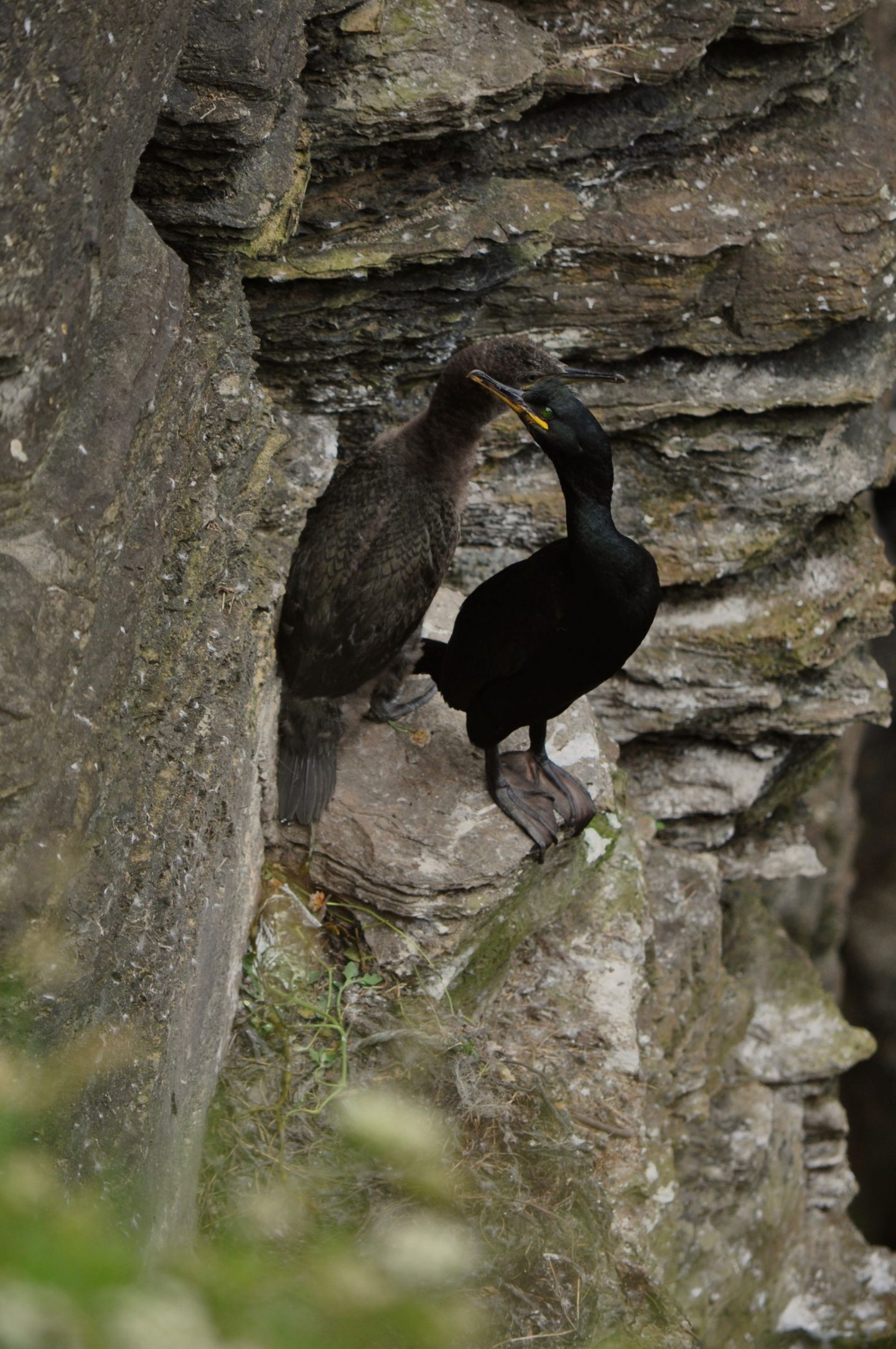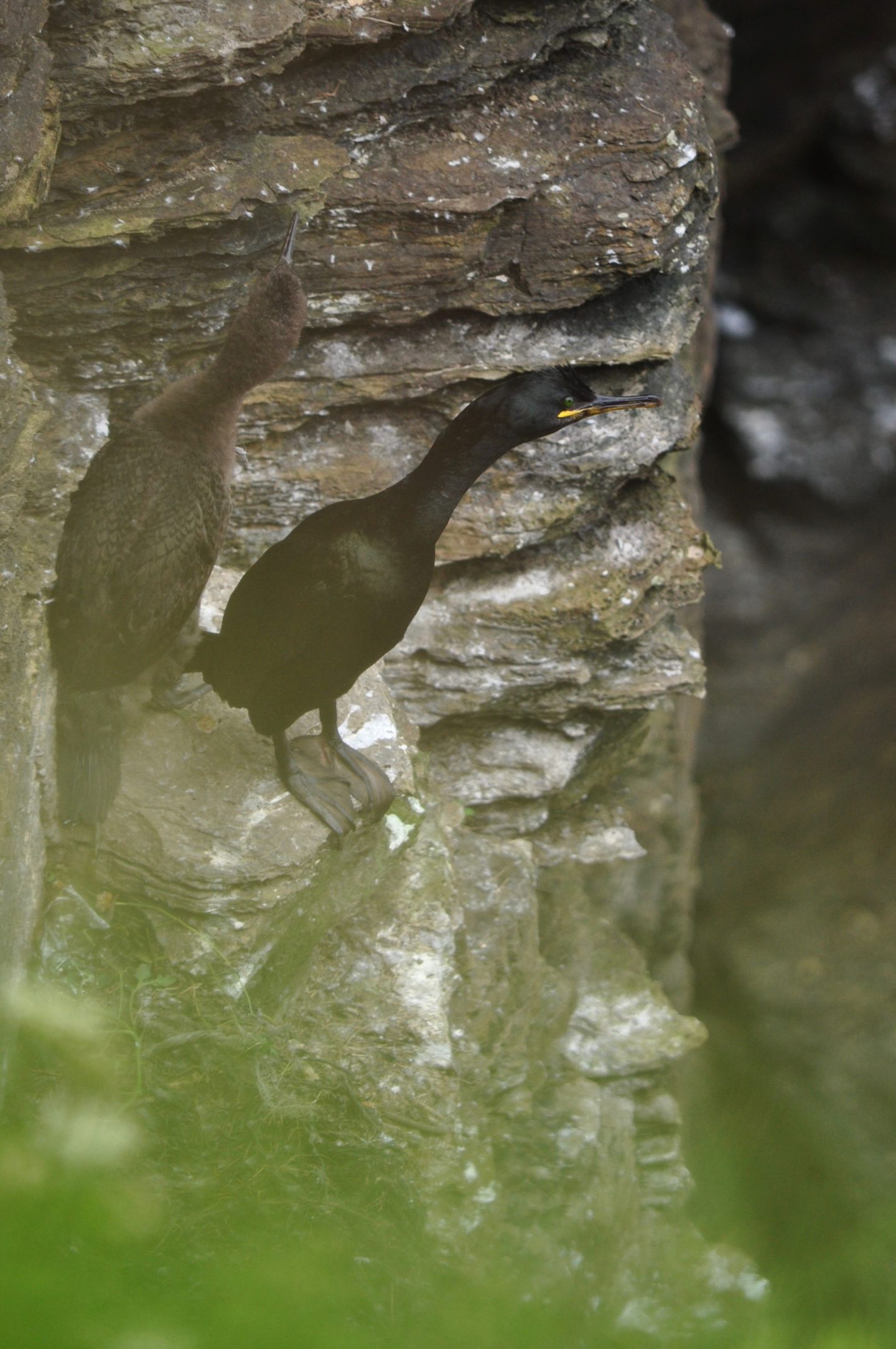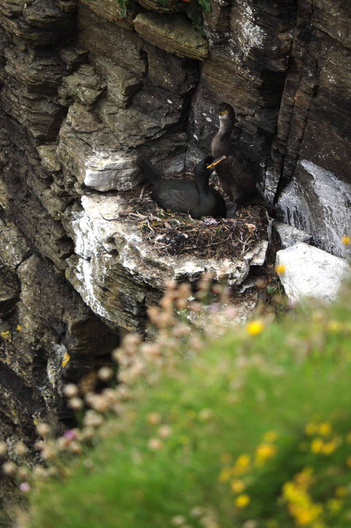 We spent two glorious weeks perching on cliffs and systematically keeping an eye on over 400 seabird nests- everything from guillemots and razorbills raising their young on the tiniest of ledges to kittiwakes with their well constructed nest cups. If you asked me what my favourite thing to survey was, though, it’s got to be these guys. I feel that shags often get forgotten about when other seabirds enter the picture. And yes, I do get that they aren’t as comically ungainly on land as the auks, and they don’t ride the wind currents as dramatically as the fulmars. But there’s something vaguely Jurrasic Park about them- something in the pale eyes of the chicks with their patterned backs that almost look like scales, that reminds you of their ancestry. Plus they’re pretty messy, and as someone who’s currently blogging instead of unpacking a suitcase that has been sat on my bedroom floor for two weeks this speaks to me.